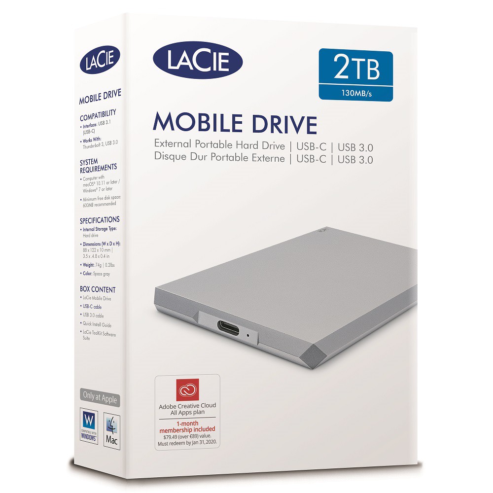 Lacie rugged usb c 2tb external hard drive portable hdd usb 3 0 compatible drop shock dust rain resistant for mac and pc computer desktop workstation laptop 1 month adobe cc stfr2000800 lacie mobile drive 2tb external hard drive hdd moon silver usb c usb 3 0 for mac and pc computer desktop workstation laptop sthg2000400.